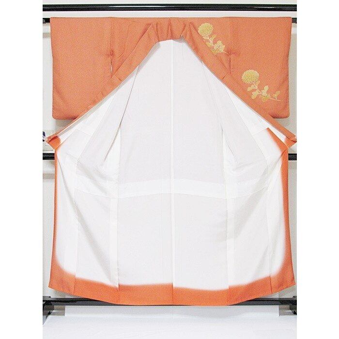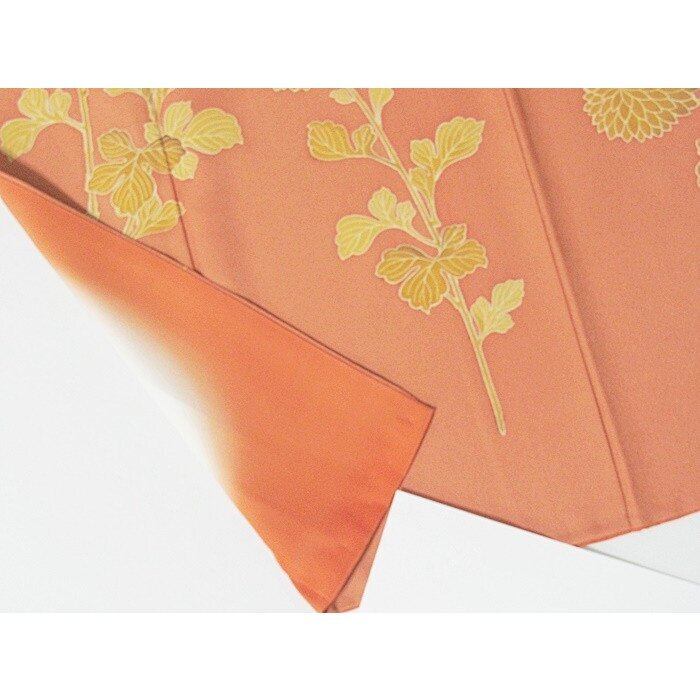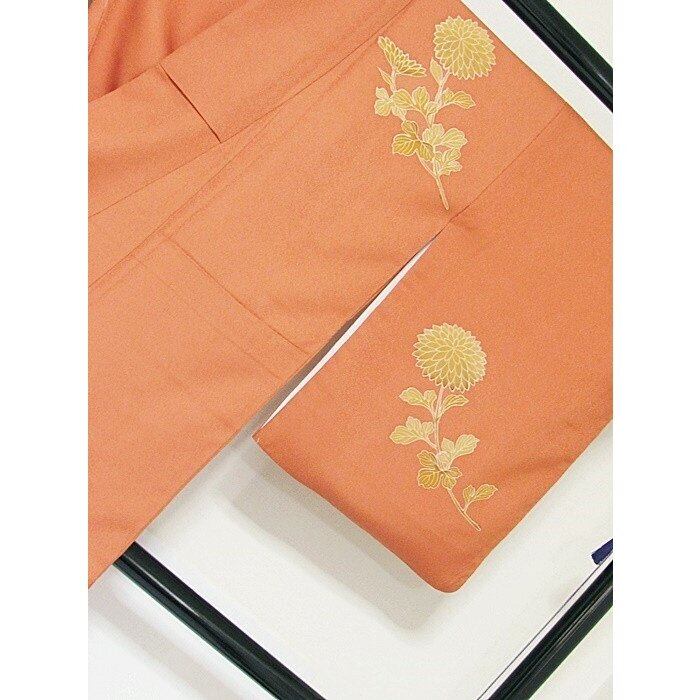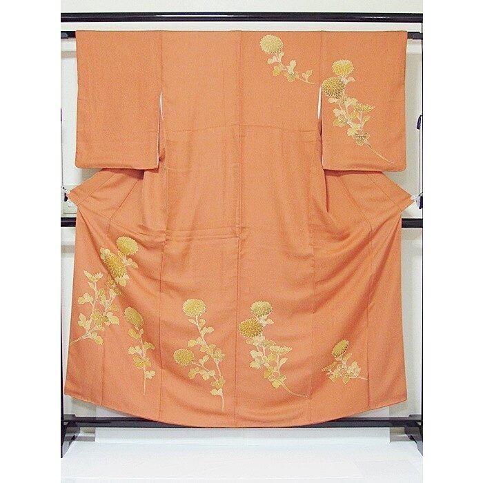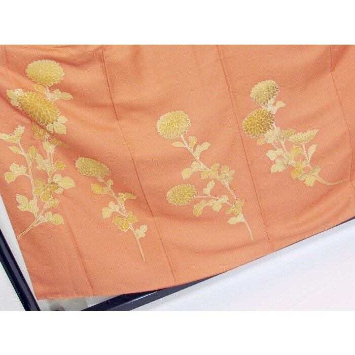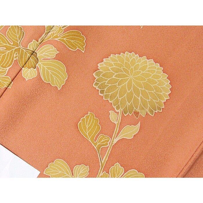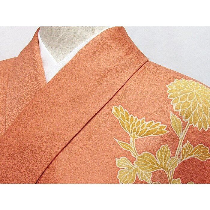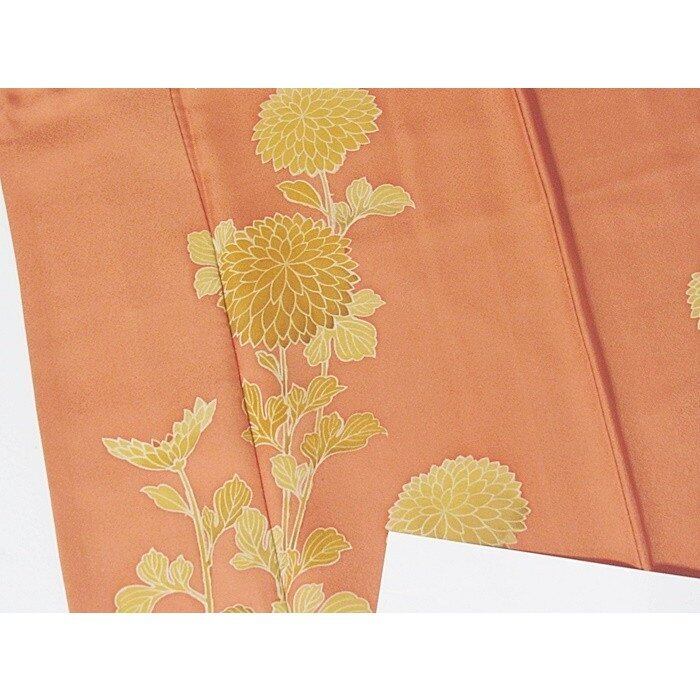 附下げ 袷着物 綸子 菊 159cm前後ベスト オレンジ