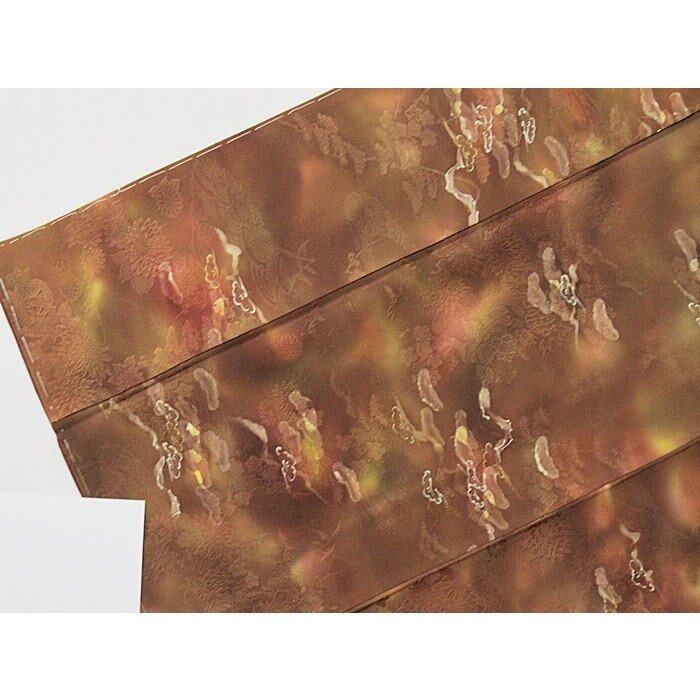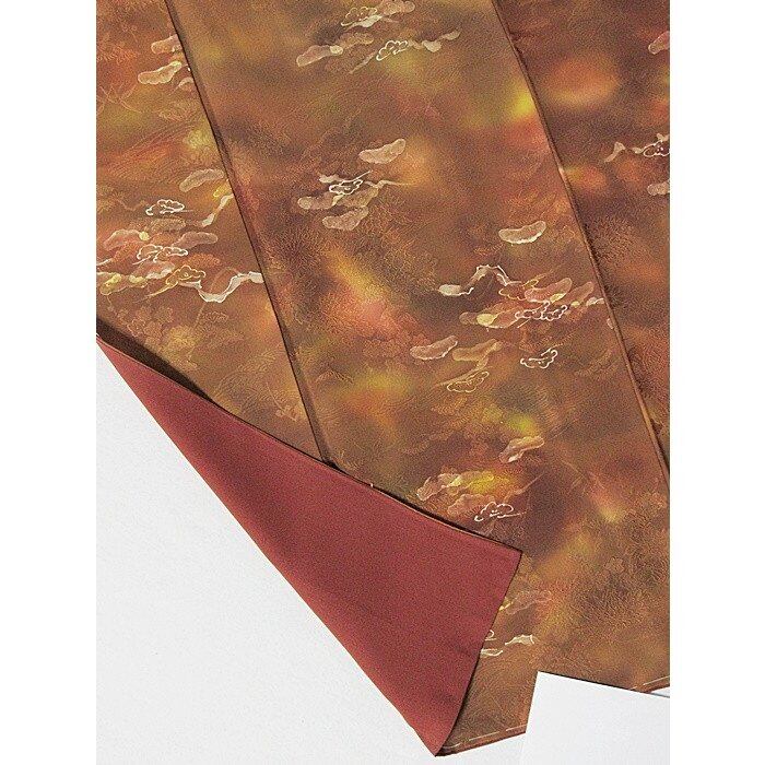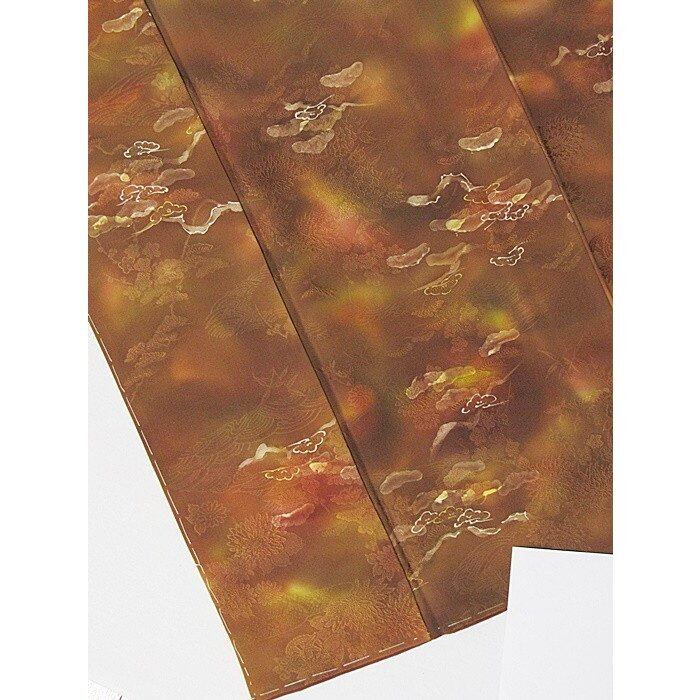 未使用 友禅 袷 綸子 地紋お越し 茶 暈し 152cm前後