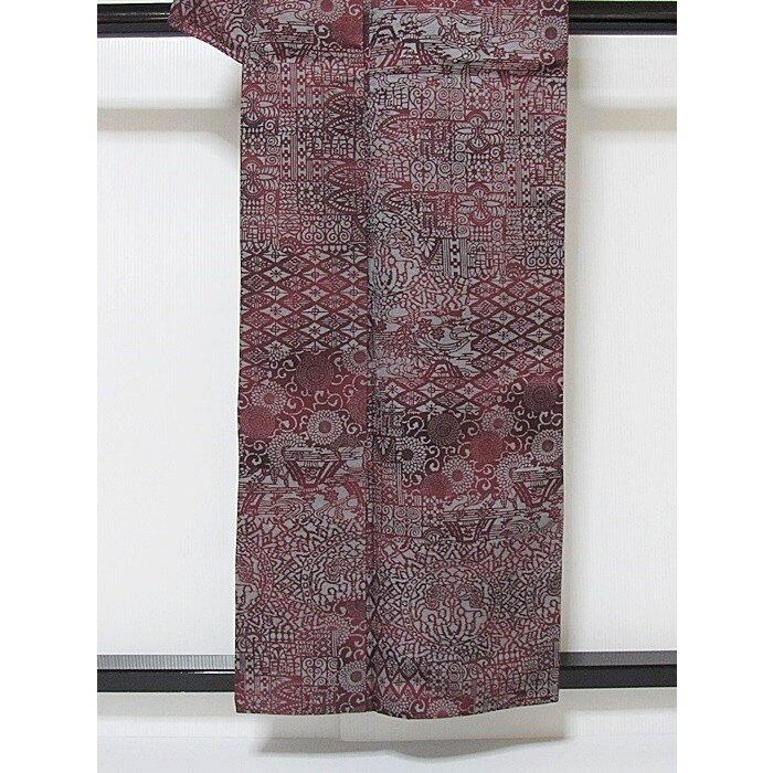 小紋 袷着物 秀粋 菊唐草 花菱 丸文 154cm前後