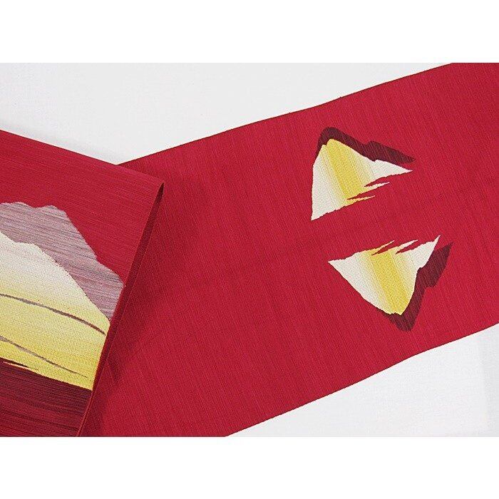織 八寸名古屋帯 上等化繊 連山風景 紅赤
