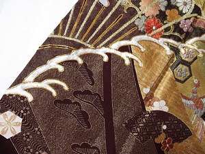 黒留袖 一越 比翼 刺繍 金泥 琳派 大波に舞菊扇取文