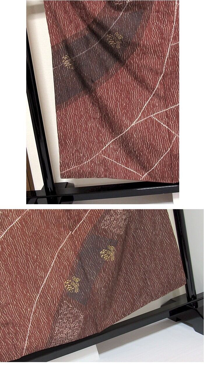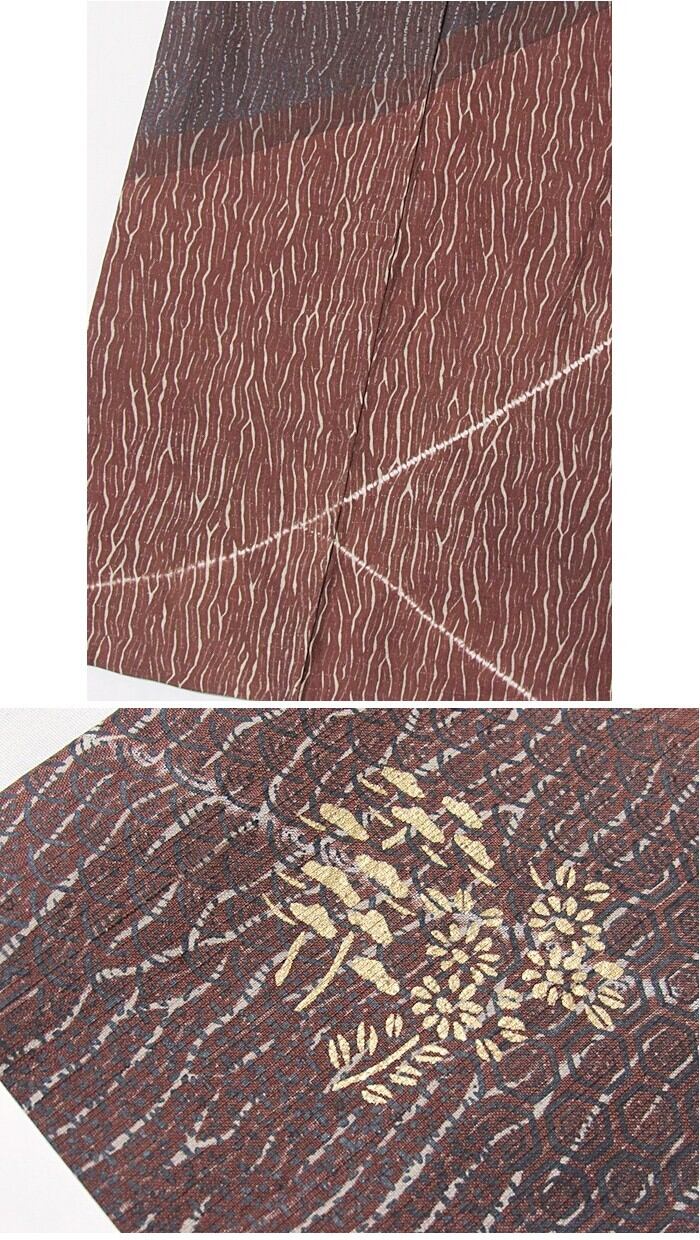 【訪問着】総絵羽 袷 縦縫い締め 絞り 裂取りに円相 ブラウン 153cm前後ベスト【超美品】お薦めです