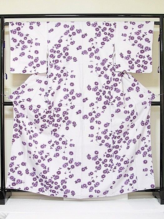 【美品】洗えるお着物です。薄パープル 地に小菊柄。ご年齢も