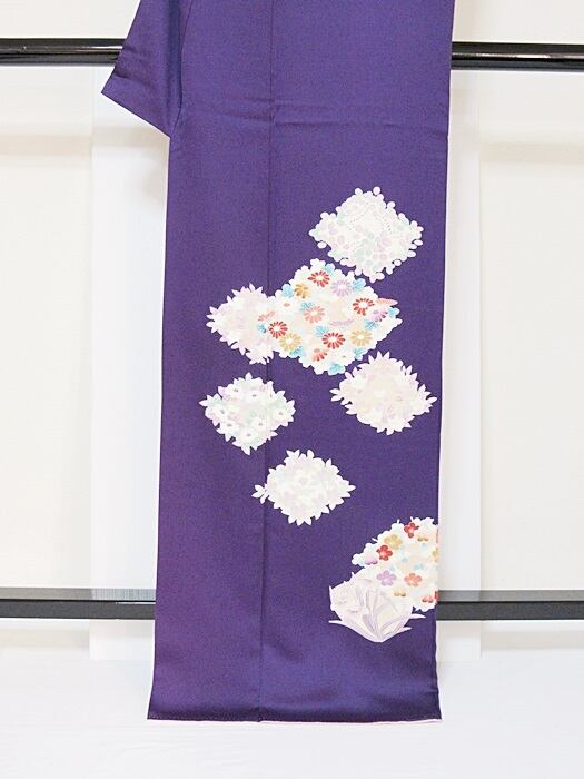 着物 USED 附下げ 花紺 170cm