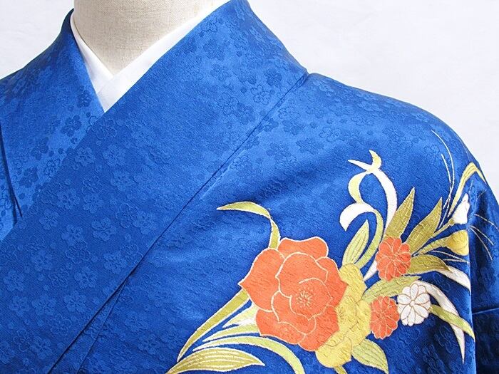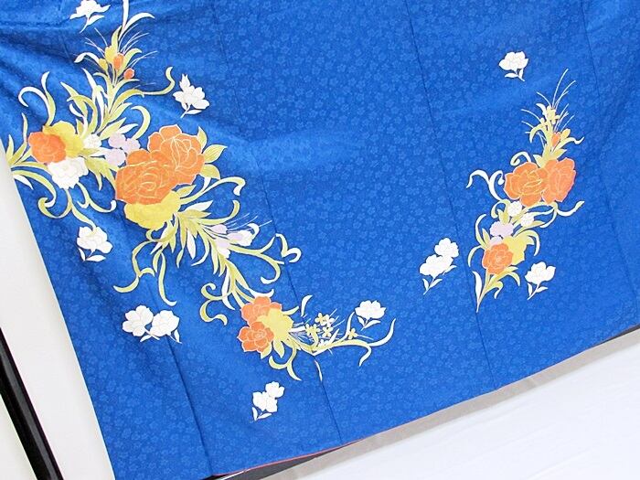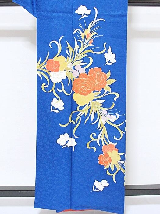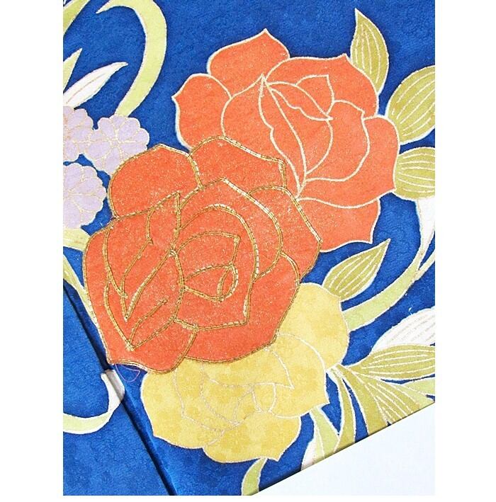 附下げ 袷 紋綸子 薔薇(バラ) 金駒刺繍/花紺★161cm前後
