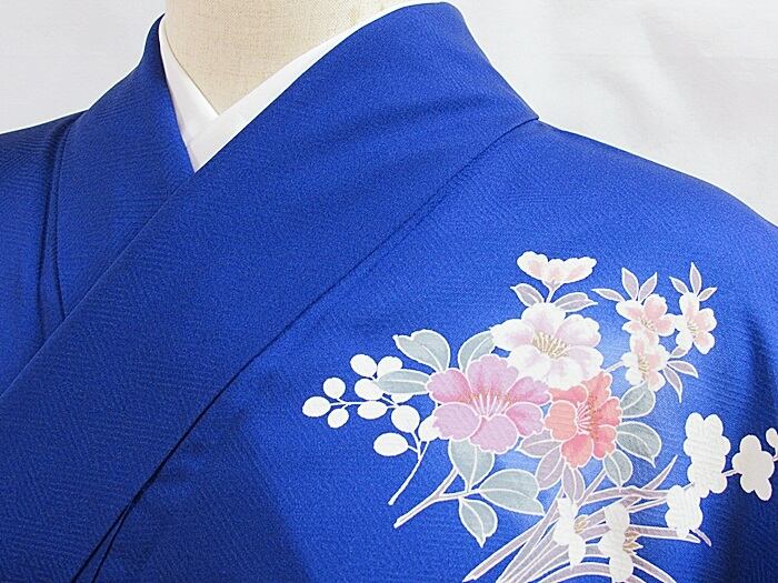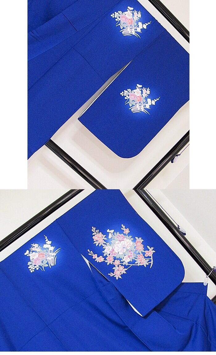 着物 中古 USED 付下げ 袷 160cm ブルー 袴下にも