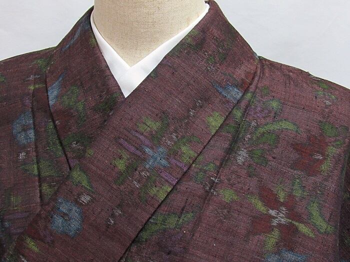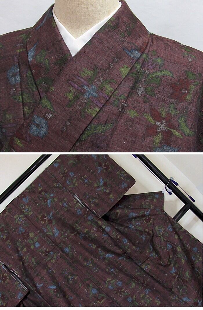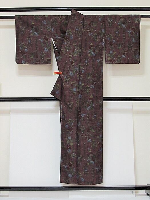 未使用 仕付けアリ【正絹 紬】草木染/手織り/ダークレッドパープル/149cm前後の方【超美品】お薦めです