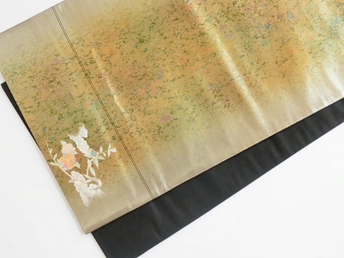 錦 袋帯 垂れ部分にワンポイント柄/焼箔仕様☆黒地に焼箔【美品】