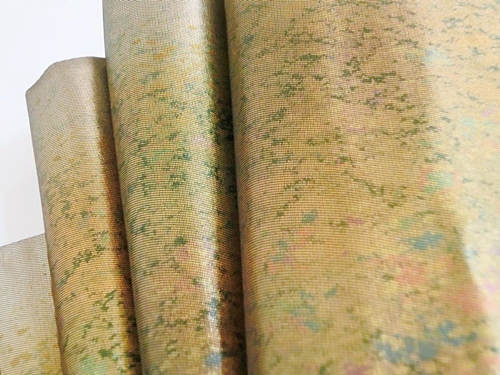 黒地に緯糸に焼箔仕様糸を織り込んだ大変