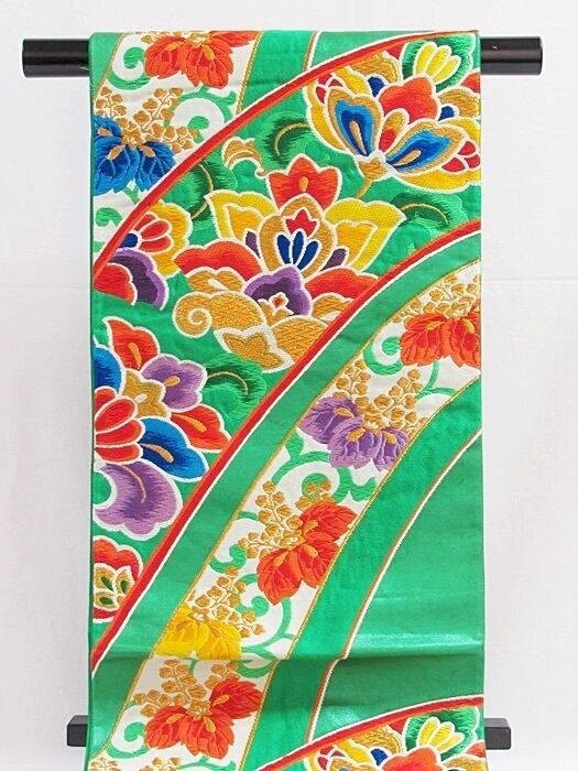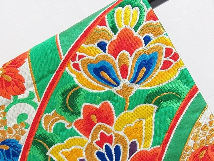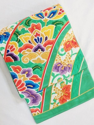 錦 袋帯 大唐花 桐文/グリーン【美品】お振袖に