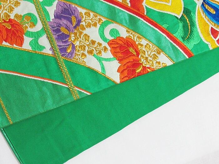 【錦 袋帯】大唐花 桐文/グリーン【美品】お振袖に