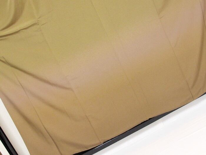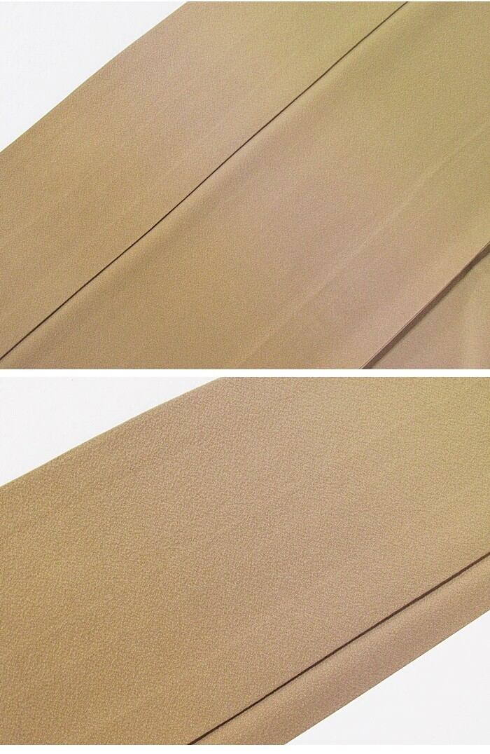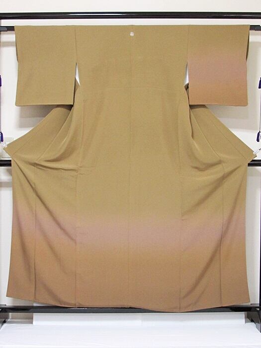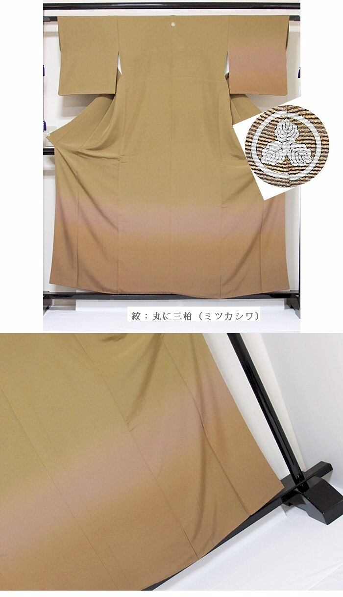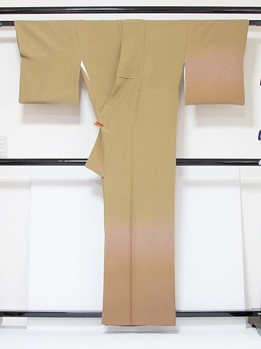 【附下げ 紋入り】袷着物 縮緬 横段暈かし/160cm前後ベスト★カーキ色【美品】