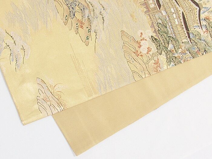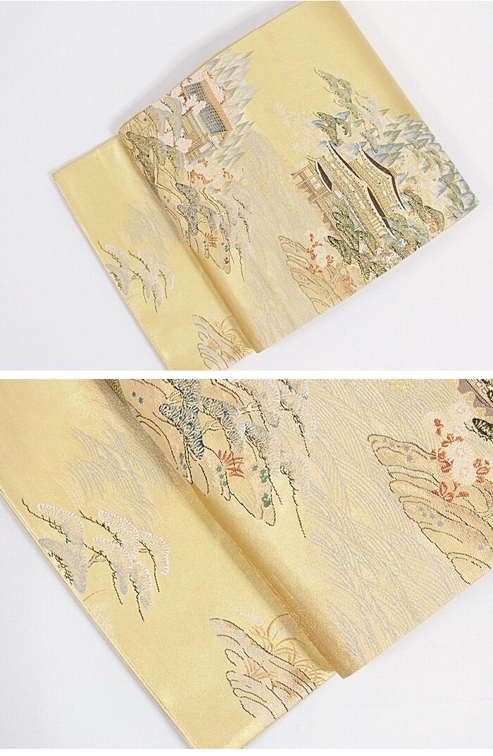 【錦 袋帯】衣笠鹿苑寺 金閣/別腹(柄が上向き)☆ゴールド【美品】
