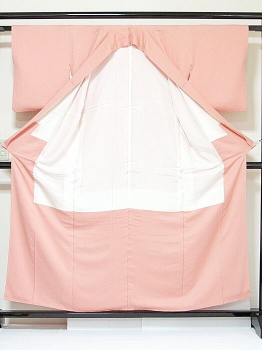 【美品】鴇色の色無地袷着物です。紋は入っておりません。後ろ身頃左
