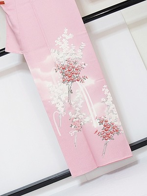 が優しく、花束絵図が描かれております。未使用で非常に良い状態です。胴裏は