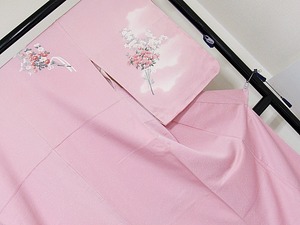 【超美品】非常にキレイな附下げ袷着物です。キレイなピンク地に雲取り暈かし