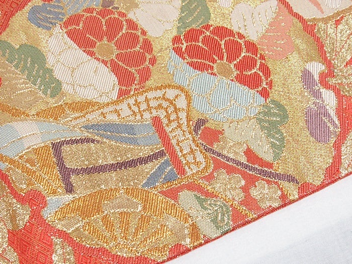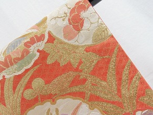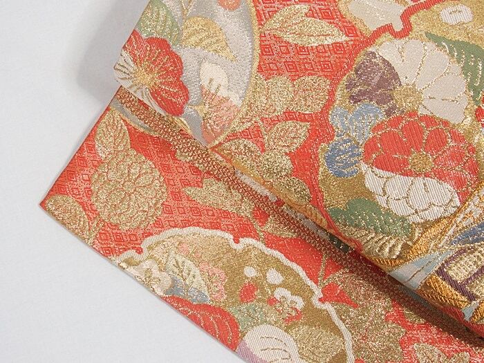 佐賀錦 袋帯 吉祥花 雪輪 御所車 ピンクオレンジ